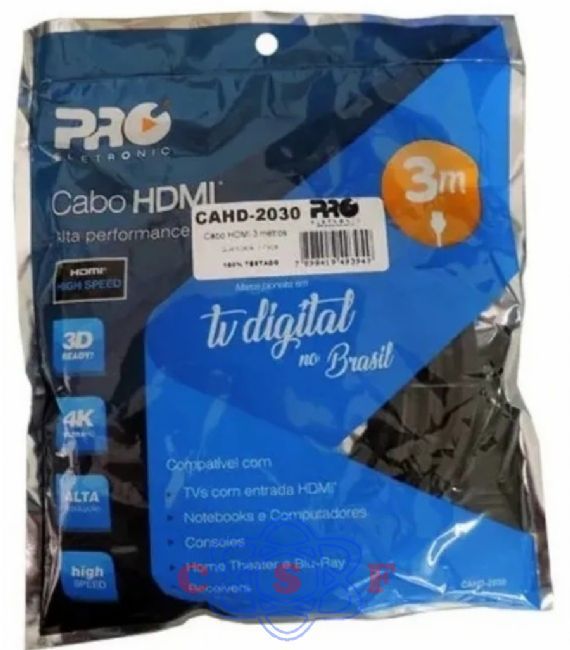 Cabo HHDMI Pro Eletronic Alta Performance 2,0 3 metros preto CAHD-2030 Marca: PROELETRONIC Código de barras: 7898419493949