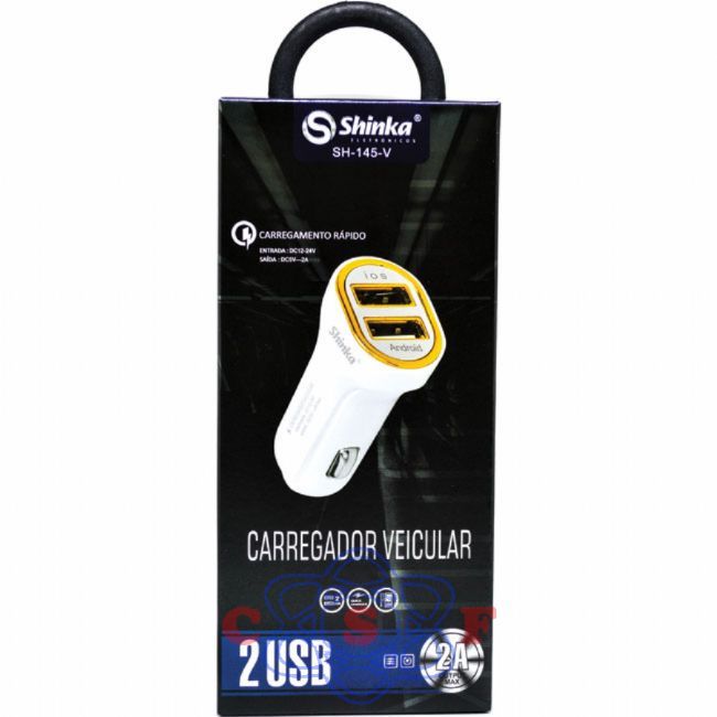 Carregador veicular Rápido Shinka 12A24V 2 Saidas Usb 2,0A SH-145-V