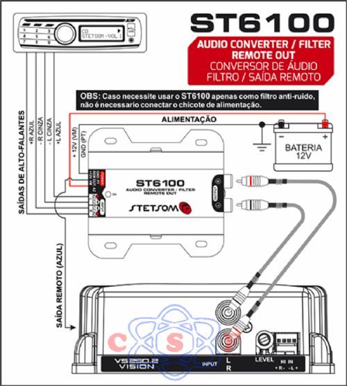 Conversor Adaptador Audio com Filtro Canal Fio para RCA Stetsom com Saida Remoto ST6100 Marca: Stetsom