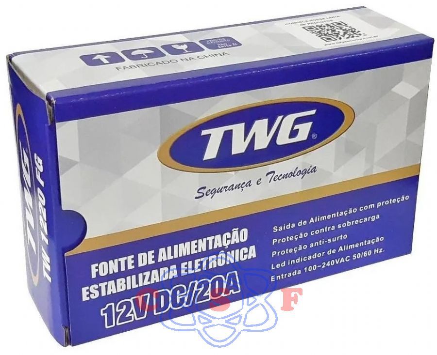 Fonte 12V 20 Amperes Carcaça Metal Bivolts TW 1220 FG Marca: TWG Código de barras: 7893590163339