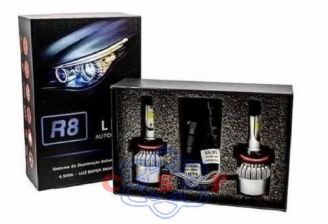 Kit Lâmpada Farol Ultra Led R8 H1 35W 12V/24V 6500K 6000 Lumens Marca: JR8 IMPORTS