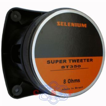 Super Tweeter JBL Selenium ST350 100W RmsO Super Tweeter ST350 apresenta elevada eficiência e baixa distorção na reprodução das altas freqüências.Pode ser utilizado em sistemas de PA, mini trios automotivos e em sistemas de reforço de som.
