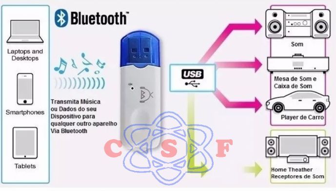 Transmissor Bluetooth CD Player MP3 Audio Conexão Entrada usb |