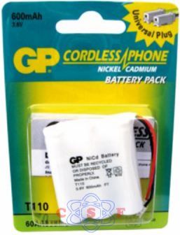 Bateria Recarregável para Telefone sem fio GP T110 3,6V 600mAh AABateria recarregável para telefone sem fio da GP. Possui plug universal que permite a utilização em diversas marcas de aparelhos de telefones sem fio. A bateria recarregável para telefone sem fio modelo T110 da GP, tem voltagem de 3.6V e corrente de 600mAh.
