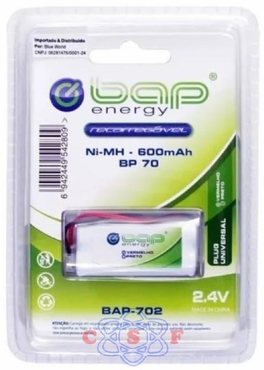 Bateria Telefone BAP 2,4V X 600mah BAP702 Marca: BAP Código de barras: 6942449542809