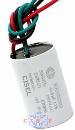 Capacitor para Ventilador 4uF x 6uF 250 VAC 50/60 HZ 3 Fios |