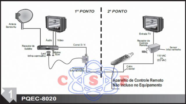 Extensor de Controle Remoto Proeletronic PQEC-8020Prático e inteligente, o extensor permite que o usuário controle o equipamentos (set up box, receptor de tv paga, receptor de satélite) a partir de um outro ambiente utilizando o próprio aparelho de controle remoto do equipamento. Desta forma o usuário obtem um ponto escravo de um sistema de tv paga, seja, tv a cabo, MMDS ou DTH.