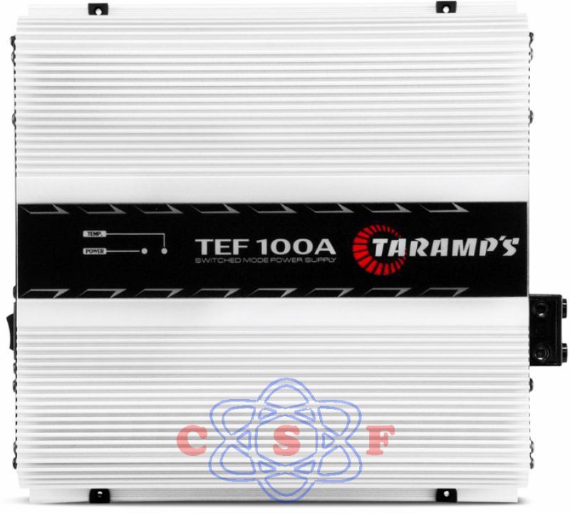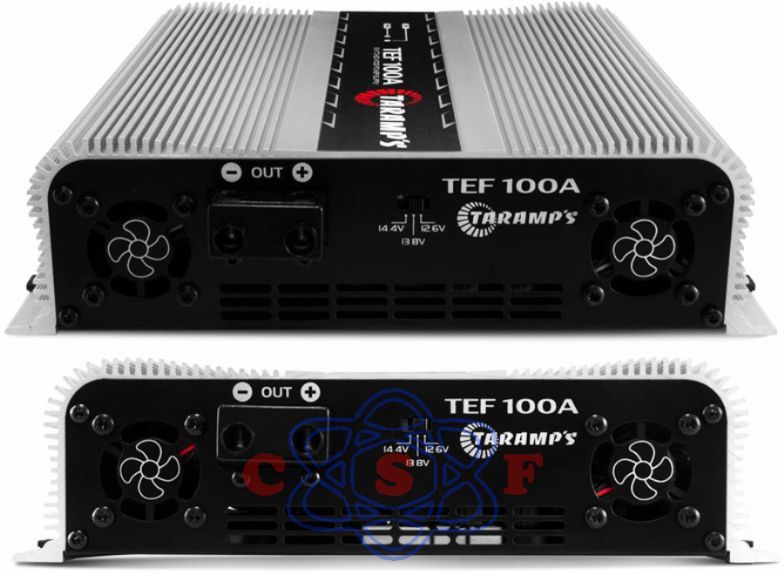 Fonte Chaveada Taramp´s TEF-100A 12,6 / 13,8 / 14,4V 100 AmperesA Fonte Chaveada Taramps TEF-100A é um conversor AC/DC chaveado com controle PWM (modulação por largura de pulso), o que possibilita obter alto rendimento, baixo aquecimento, tamanho compacto e baixo peso comparado com as fontes lineares tradicionais.