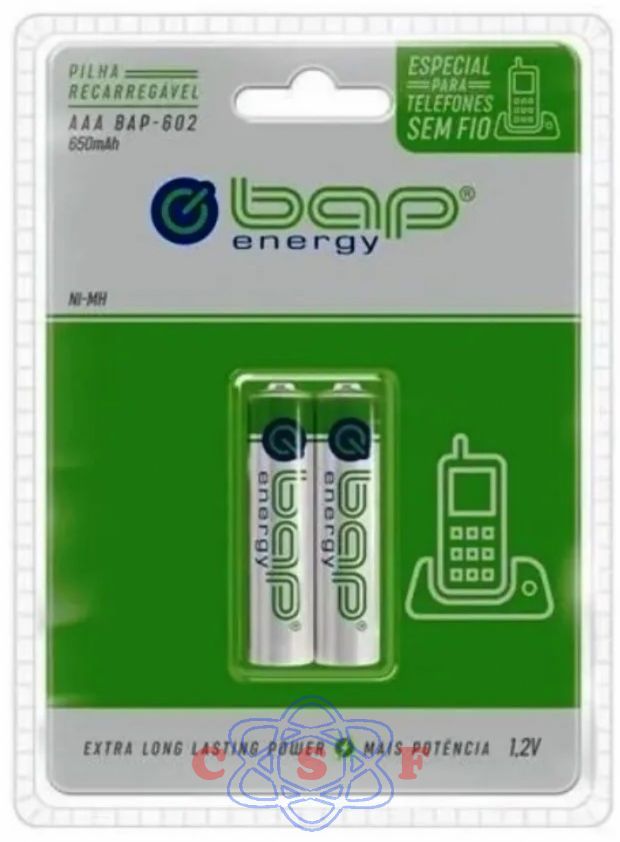 Pilha BAP Palito Recaregável AAA BAP-602 1,2Volts 650Mha Marca: BAP Código de barras: 6942449542557